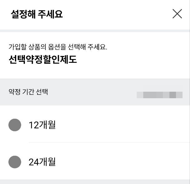 - 약정 기간 : 12개월 또는 24개월 중 선택 가능