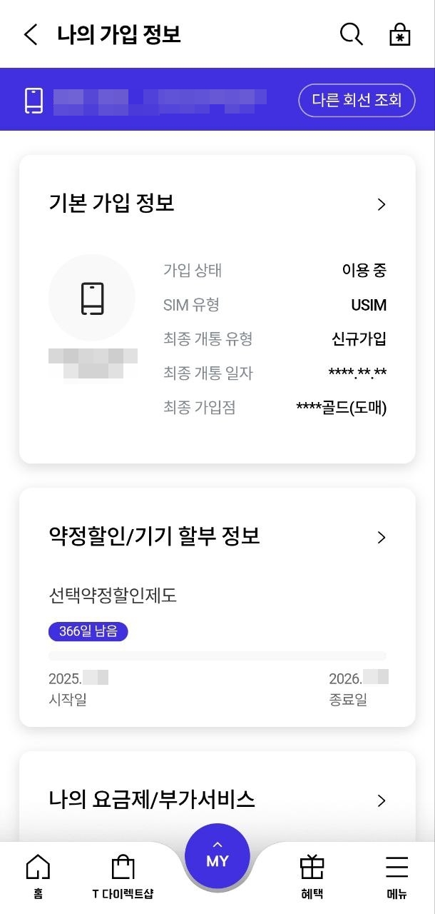 - 타사 단말의 경우 : 최초 개통일로부터 6개월 경과 후 가입 가능