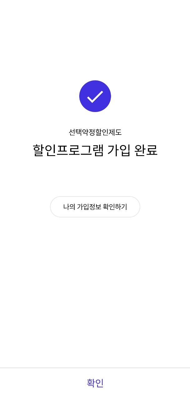 가입이 완료되고 나의 가입정보 확인하기 버튼을 터치하면 나의 가입 정보에서 선택약정할인제도 시작일과 종료일을 확인할 수 있습니다.
